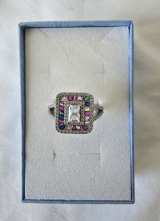 Square crystal ring #8